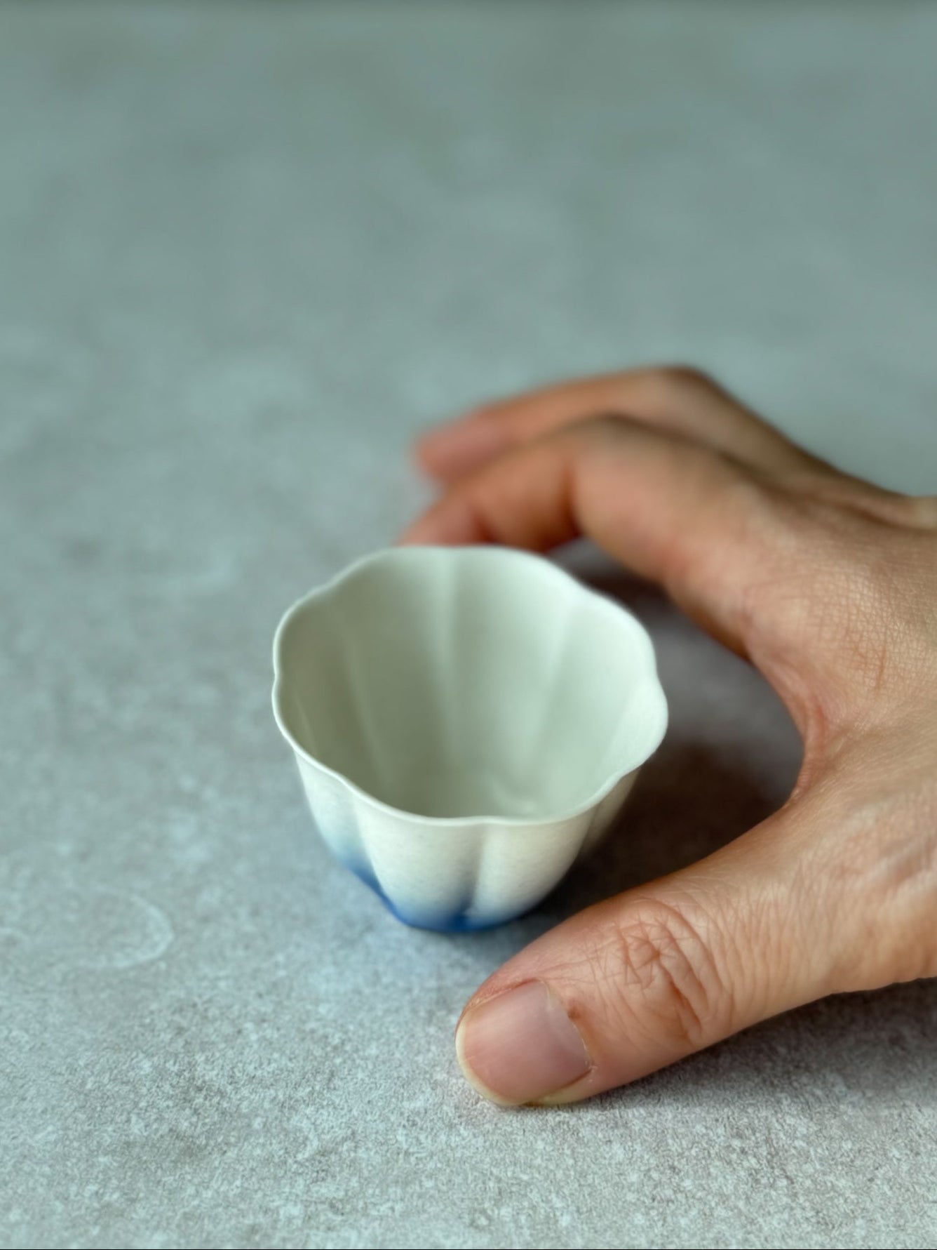 This pairing brings together two pieces in perfect harmony: the sky-kissed teacup and its softly blooming companion plate. Azure Whisper rests gently on Petal Silence—together they form a tableau of stillness, form, and feeling.