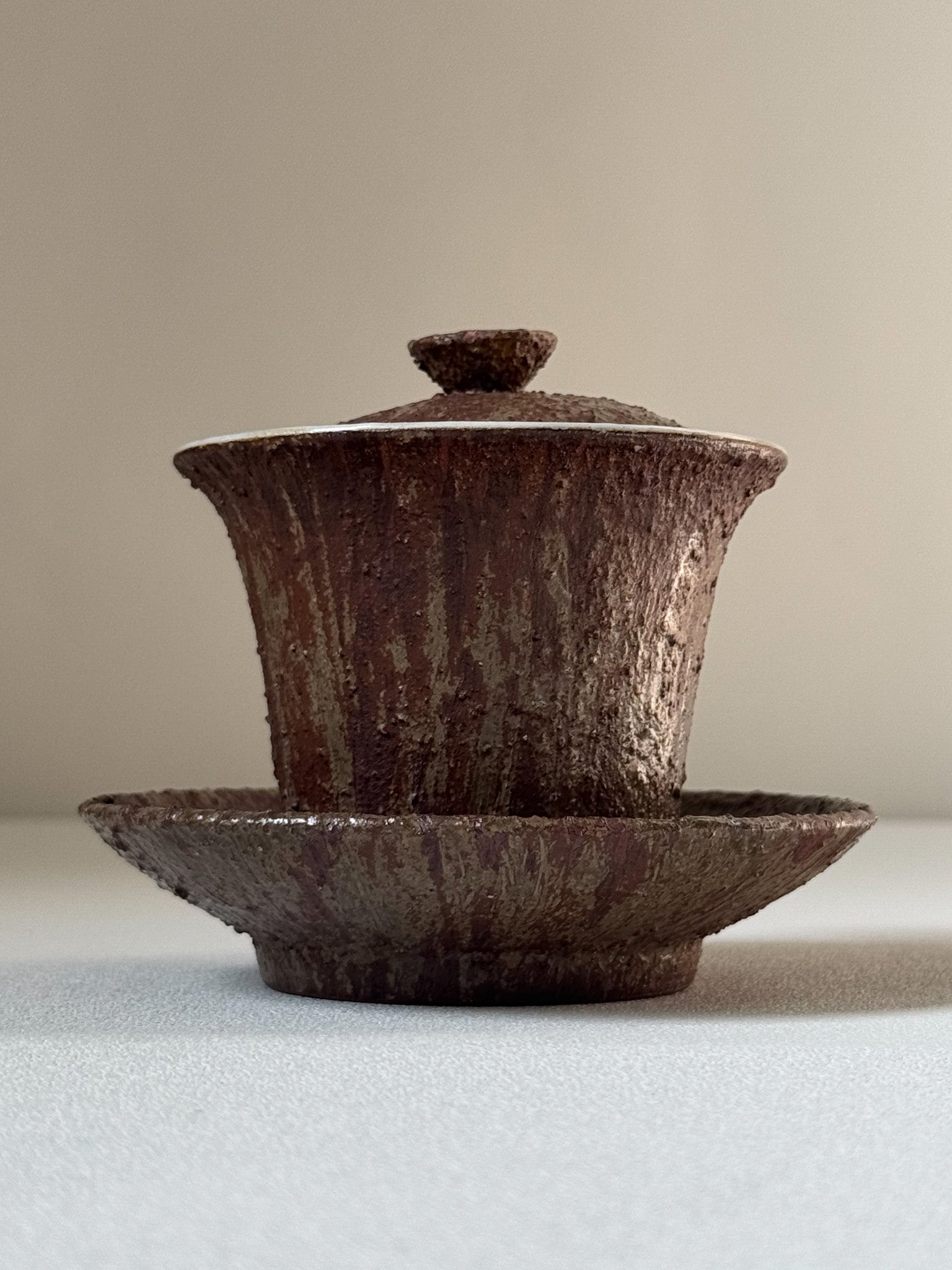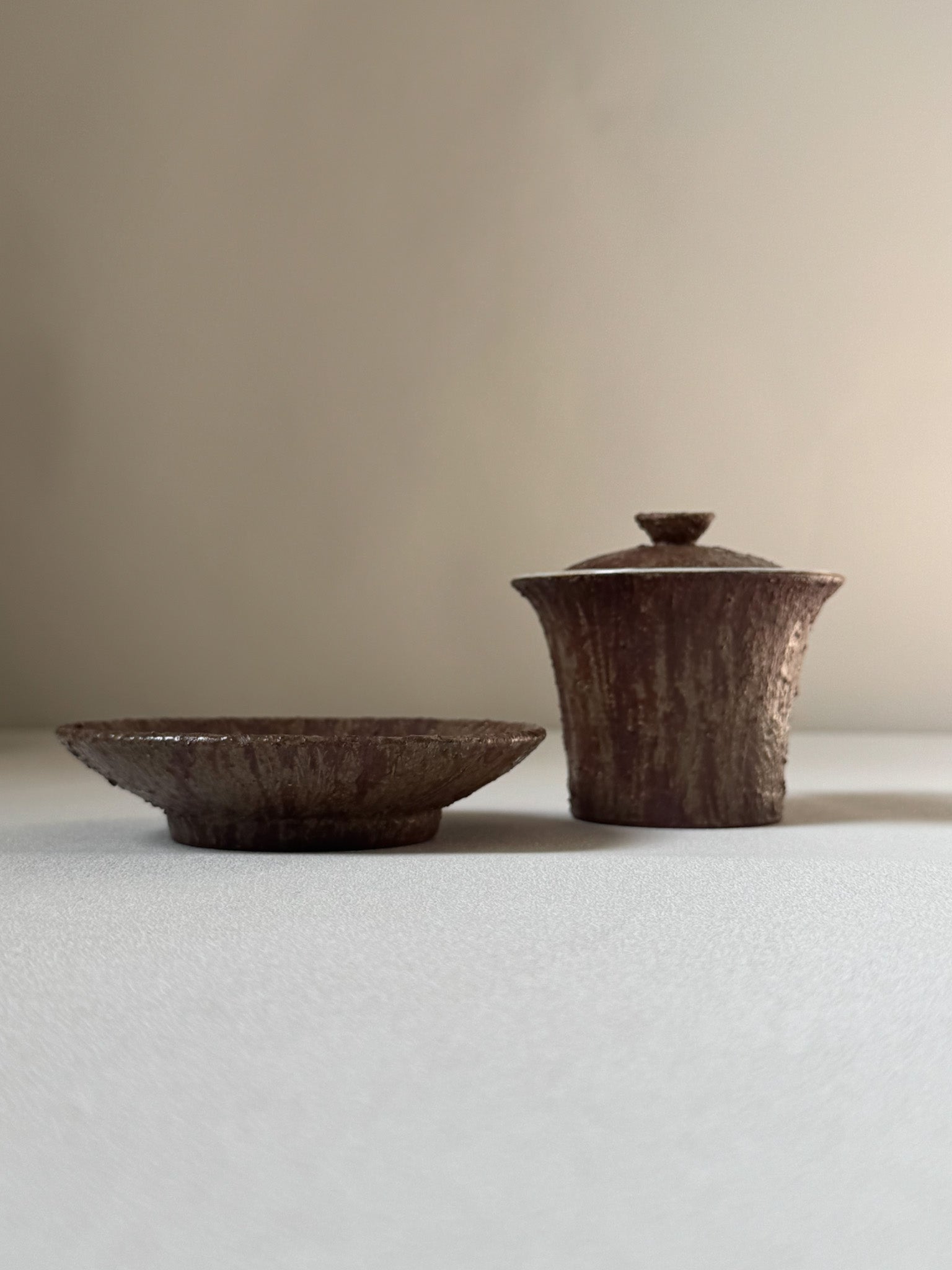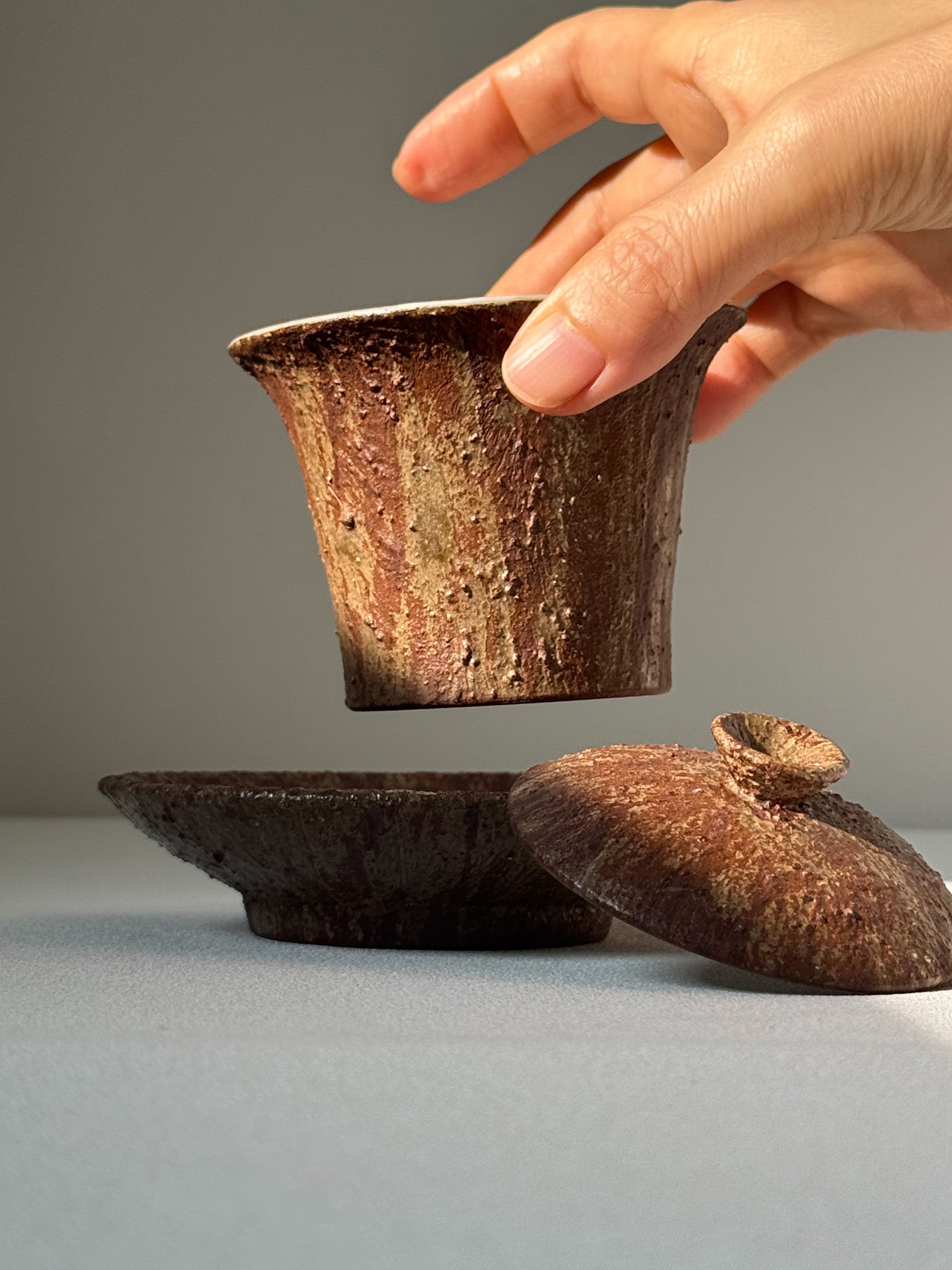 The Earth Rain Onggi Gaiwan by Shiheun Han embodies the quiet poetry of rain settling into soil. Unlike the shimmering surfaces of his Starlit Rain works, this piece reveals a subdued, earthy texture—raw yet refined, echoing the essence of Onggi as a vessel that breathes.