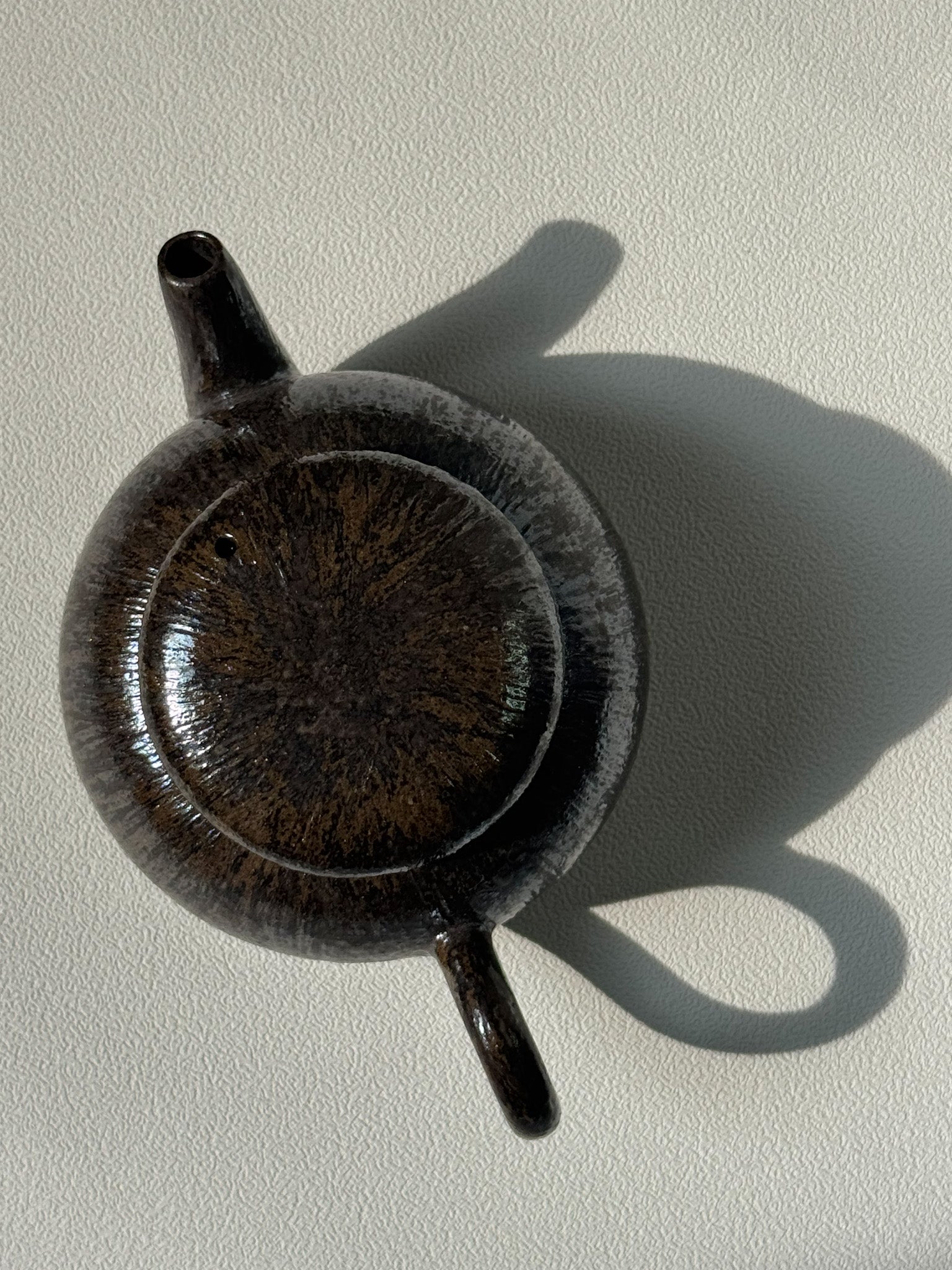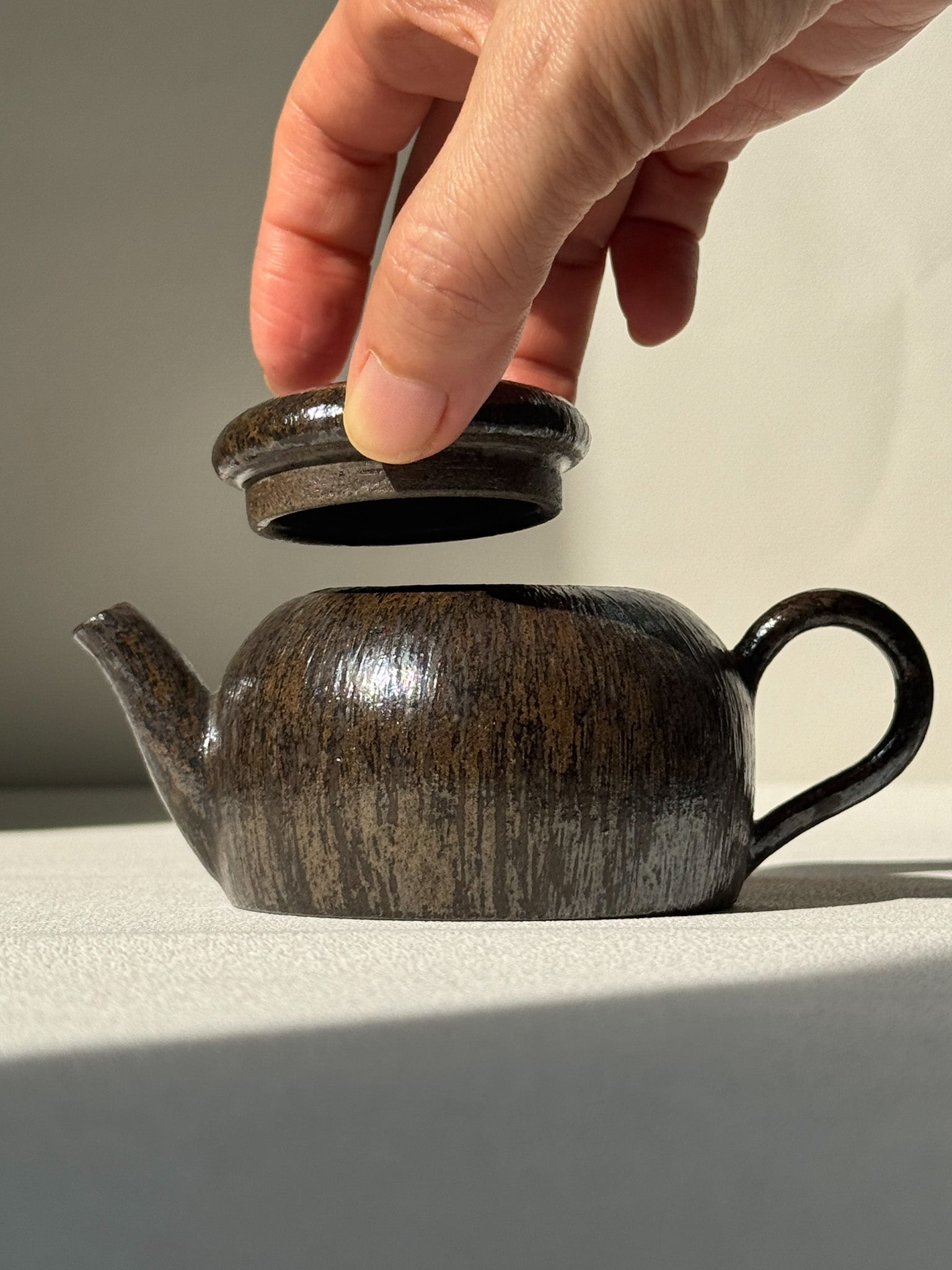 This 120cc teapot by Shiheun Han captures the essence of his renowned Onggi brushwork. Its deep black surface, marked with subtle strokes, recalls gentle rain settling into the earth—at once evoking the quiet drizzle of soil and the shimmer of night rain beneath starlight.